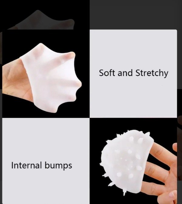 Gracias a sus relieves internos y su material elástico, genera fricción y sensaciones intensas al deslizarlo.