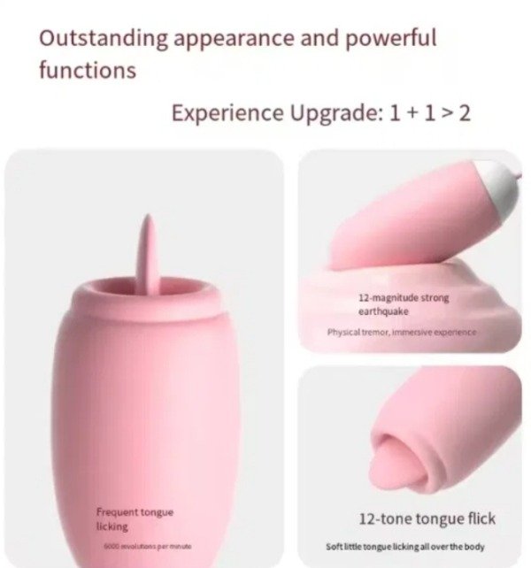 – Sistema doble: vibración + efecto “tongue licking” (estimulación tipo lengua)